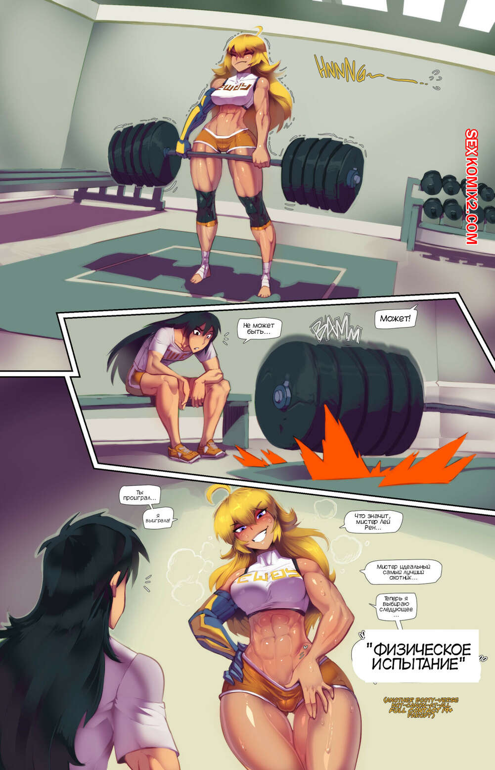 Порно комикс RWBY. Физическое испытание. Physical Challenge. Fred Perry Сексуальная блондинка тренировалась со своим дружком и предложила ему устроить физические испытания. Они стали давать друг другу задания, в процессе дела раздеваясь и возбуждая друг друга.