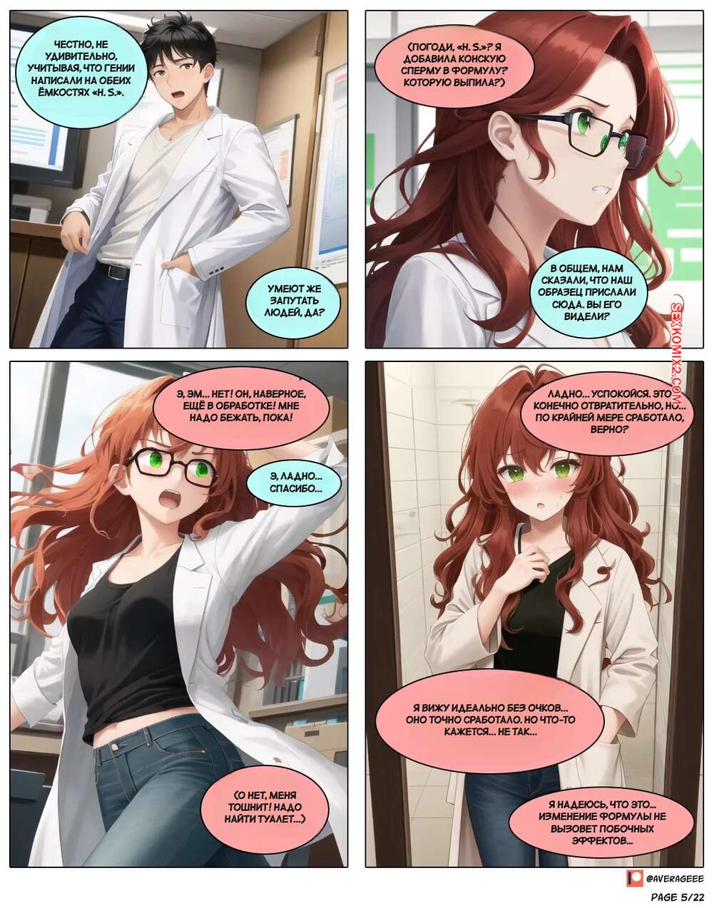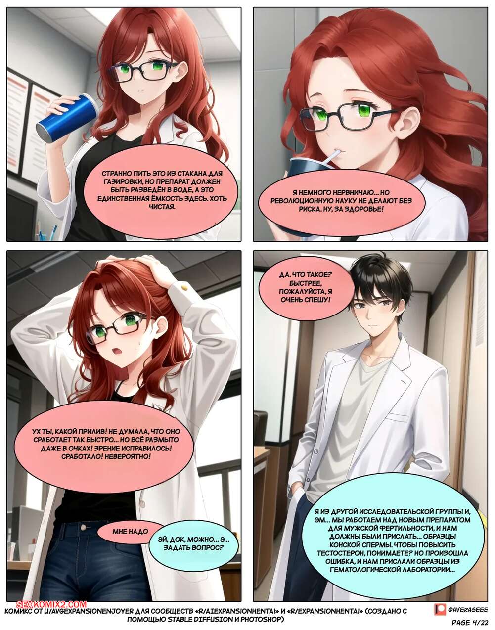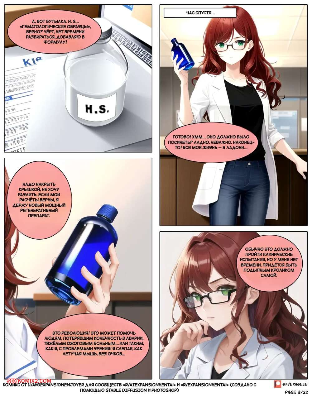 Порно комикс Регенеративная медицина. Regenerative Medicine. AverageEE. Горячая красотка выпила новый препарат и ее тело стало менять. У красотки выросли огромные сиськи и появился большой член, который девушка стала сосать, доставляя себе удовольствие.