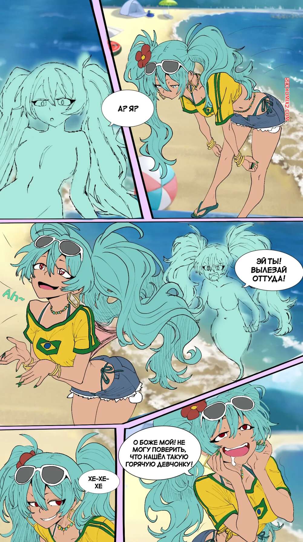 Порно комикс Мику. Miku TSF. funflo. Красотка Мику пришла на пляж, где осталась лишь в купальнике и привлекла внимание парня своим шикарным телом. Он повел девушку в уединенное место, где хорошенько ее выебал.